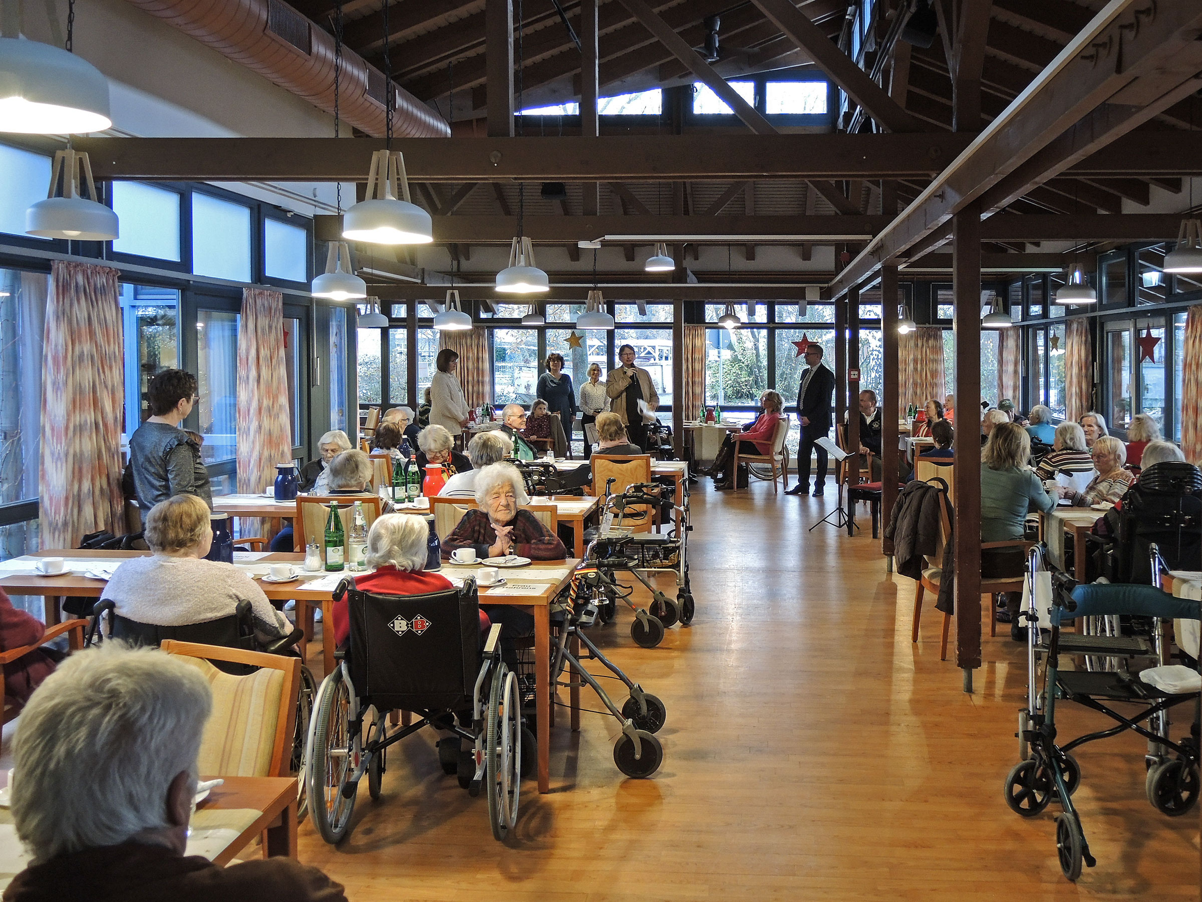 Eine Feier mit Kaffee und Kuchen zur Eröffnung der Adventszeit - seit mehr als zehn Jahren schenkt Lions Club Hannover-Expo den Bewohnerinnen und Bewohnern des Korian Seniorenheims "Haus Rosenpark Hemmingen" Zeit. Die Mitglieder richteten am 01.12.2023 für etwa 60 Gäste aus dem Heim die Feier aus, hatten Kuchen gebacken, sangen mit allen und trugen eine Weihnachtsgeschichte vor.