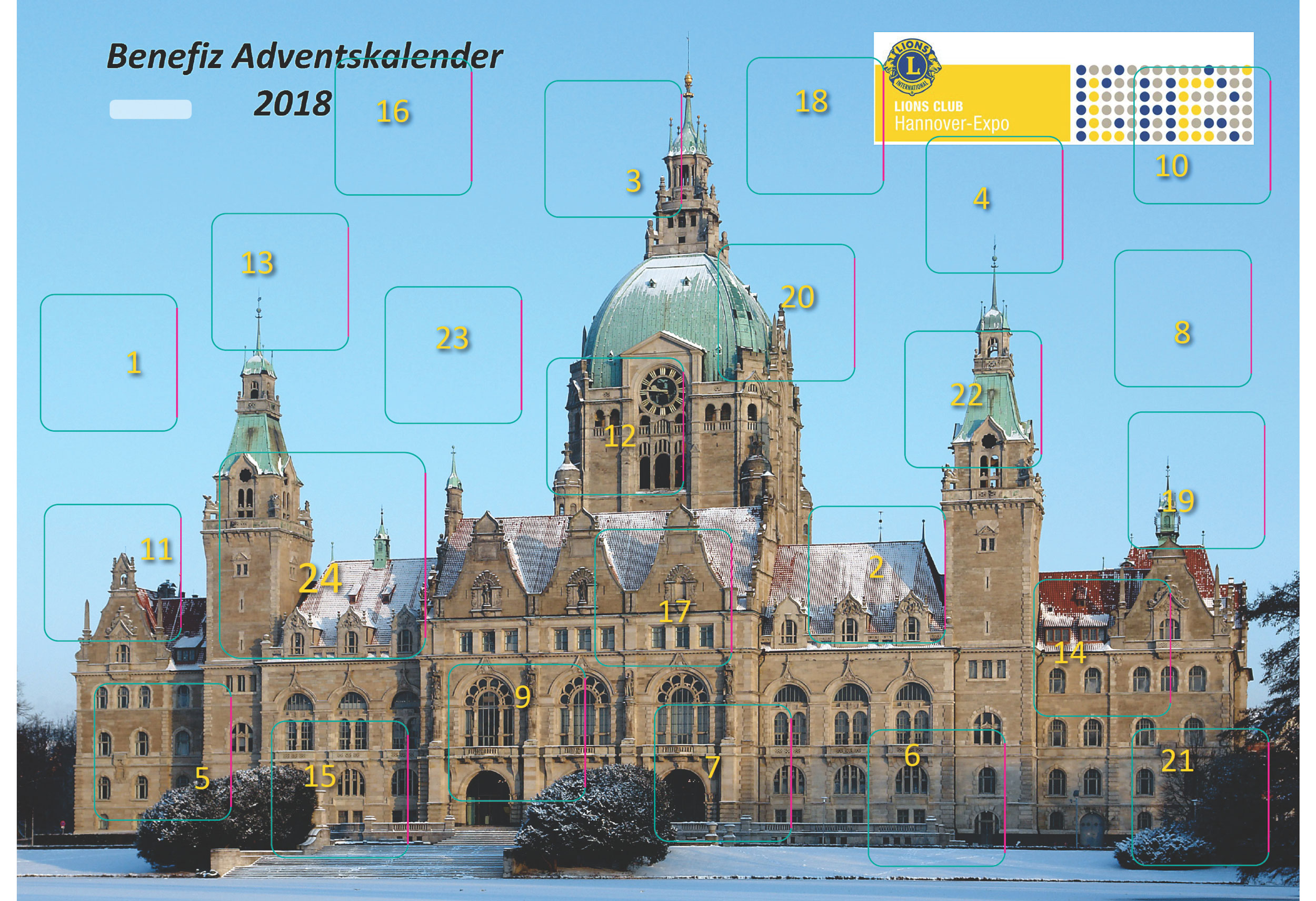 Seit 2018 legt Lions Club Hannover-Expo einen Benefiz-Adventskalender auf, mit dem Käufer schöne Dinge gewinnen, aber gleichzeitig auch Gutes tun können. Namhafte Sponsoren tragen mit ihren Gewinnen dazu bei. Der Reinerlös geht in die verschiedenen sozialen Projekte, die der Club unterstützt.