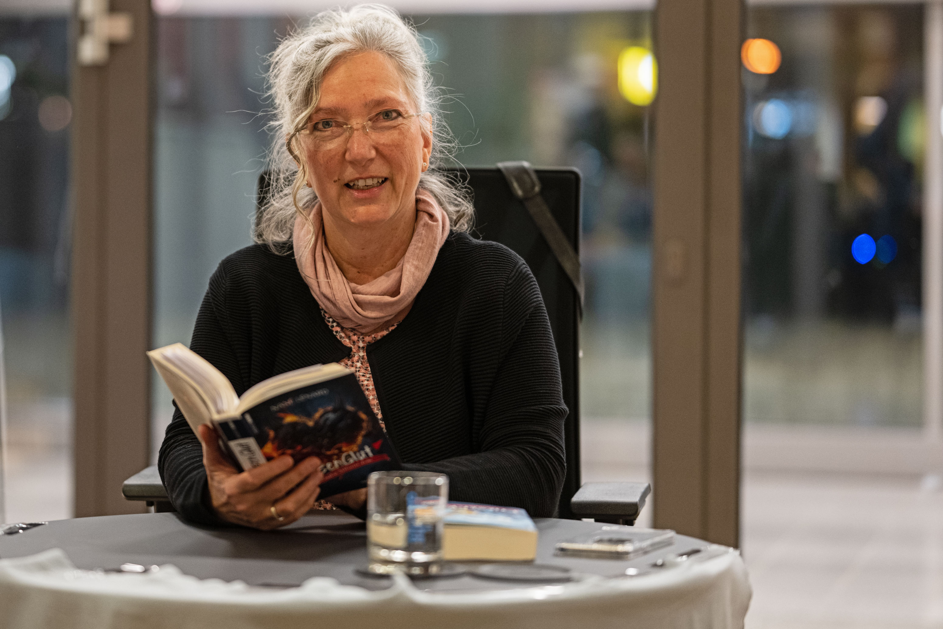 Zur Überraschung der Zuhörer stellt die Autorin ihr gerade erschienenes Buch vor